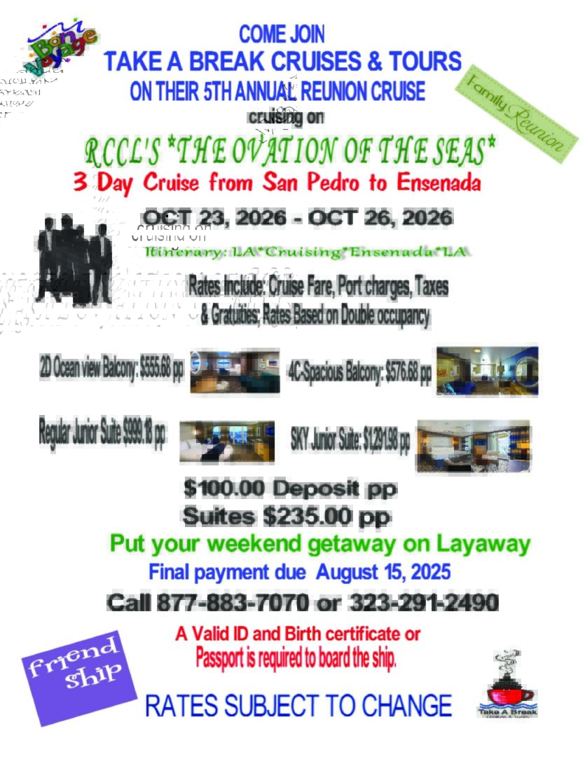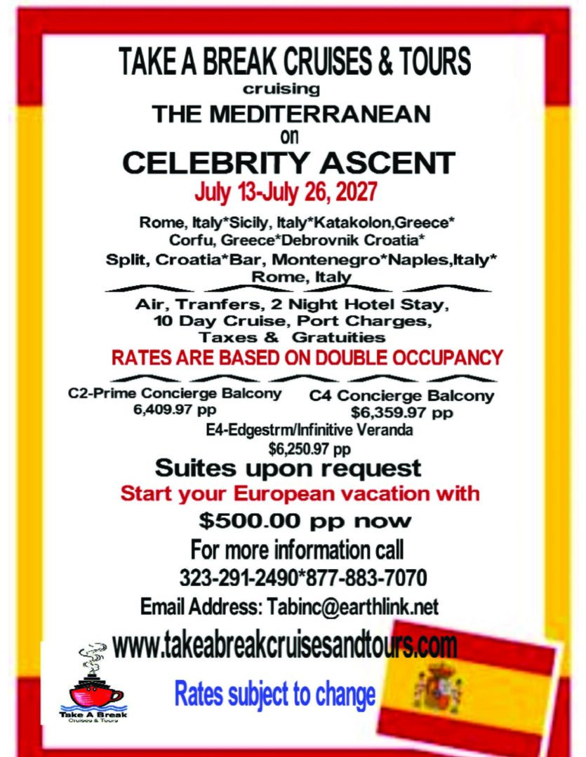 After studying travel at West Los Angeles City College under Dr. Mark Mancini, In 1998 Take A Break Cruises & Tours was born.